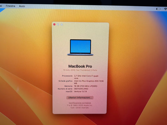 MacBook Pro (2017) [13,3", Intel Core i5 2,3GHz, 8GB RAM, 128GB SSD, Intel Iris Plus Graphics 640, macOS] Argento