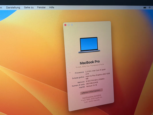 MacBook Pro (Mid 2018) [13,3", Touch Bar, Intel Core i5 2,3GHz, 8GB RAM, 256GB SSD, Intel Iris Plus Graphics 655, macOS] Grigio