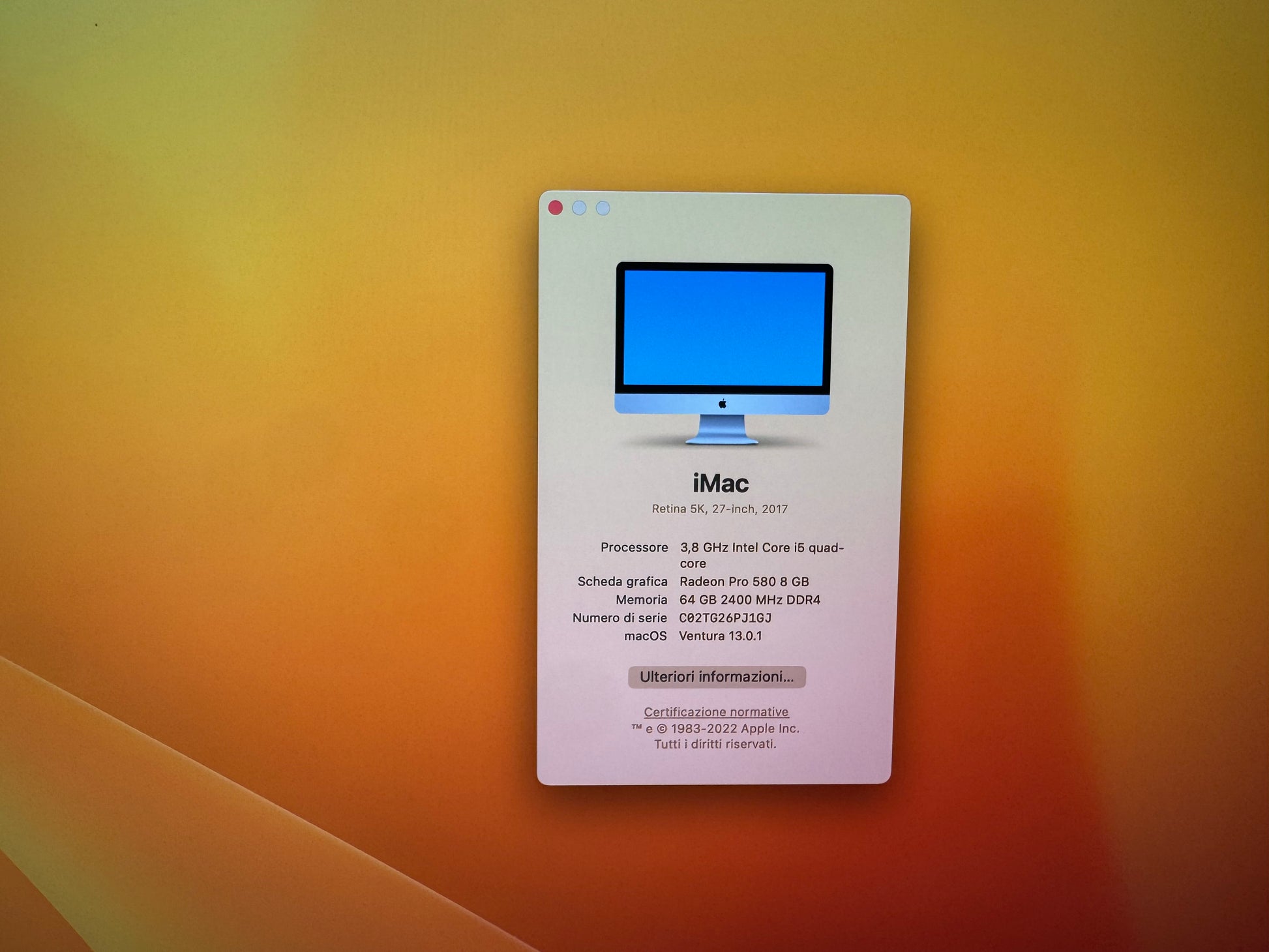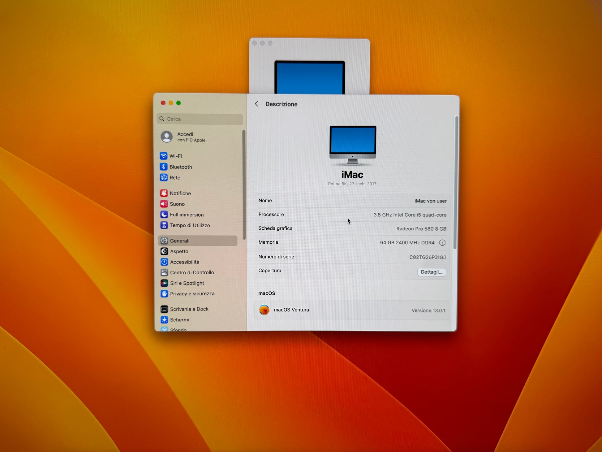 iMac (2017) [27", 5K Retina, Intel Core i5 3.8GHz, 64GB RAM, 2TB SSD, AMD Radeon PR0 580 8GB, macOS] argento