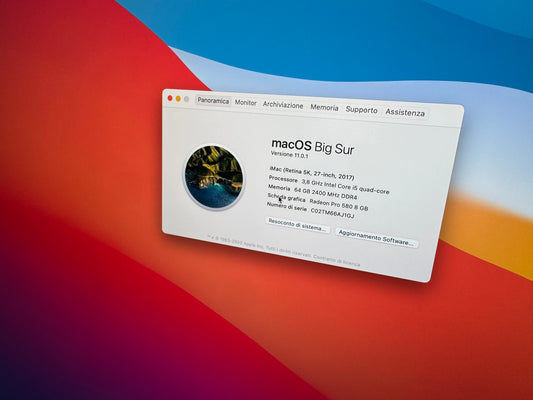 iMac (2017) [27", 5K Retina, Intel Core i5 3.8GHz, 64GB RAM, 2TB SSD, AMD Radeon PR0 580 8GB, macOS] argento